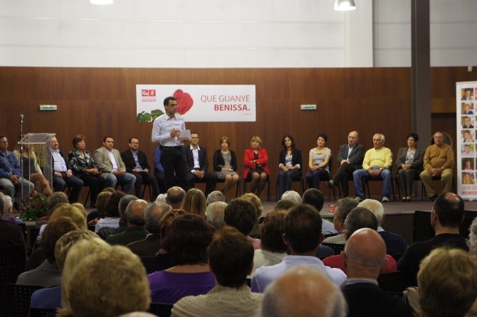 Los presentes, pudieron escuchar las intervenciones que efectuaron los cuatro primeros candidatos de la lista del PSPV-PSOE benissero.