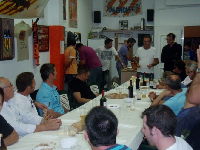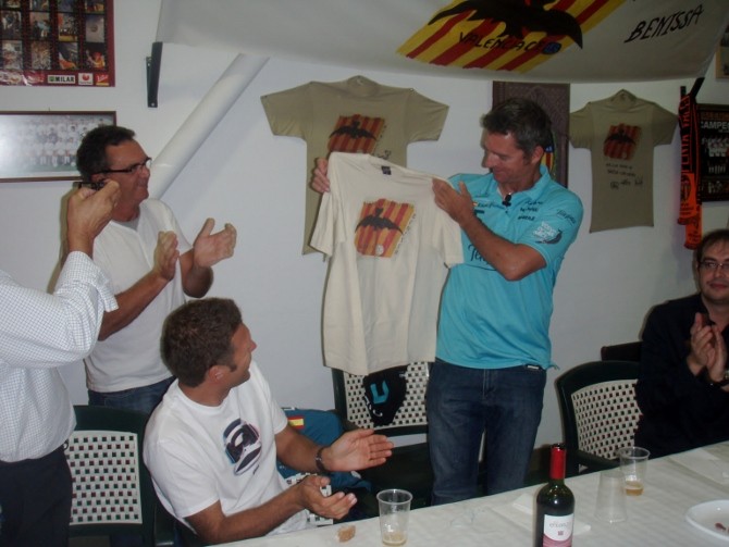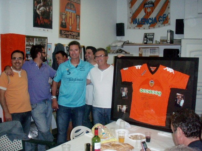 En esta cita, el Capitán del Team Telefónica, entregaba una camisita del Valencia, firmada por Albelda a la peña, que le agradecía este gesto y le correspondía con otro obsequio.