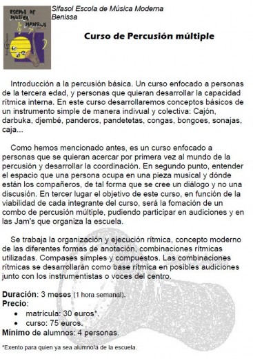 - Curso de percusión múltiple