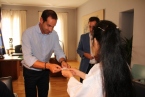 Durante la recepción se procedía al intercambio de tarjetas entre el Alcalde y el Concejal con los maestros japoneses. Posteriormente han dirigido unas palabras en las que los japoneses mostraban su satisfacción por estar en nuestro municipio y disfrutar de una recepción excelente según manifestaban estos invitados de lujo, mientras que el Alcalde señalaba que era un auténtico honor contar con su presencia y que esperaba que se llevaran un grato recuerdo de su paso por nuestro municipio.