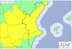 Aemet mantiene la alerta desde este viernes a las 18 horas hasta las 24 horas del domingo