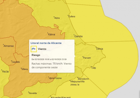La Marina Alta recibirá los coletazos de la DANA