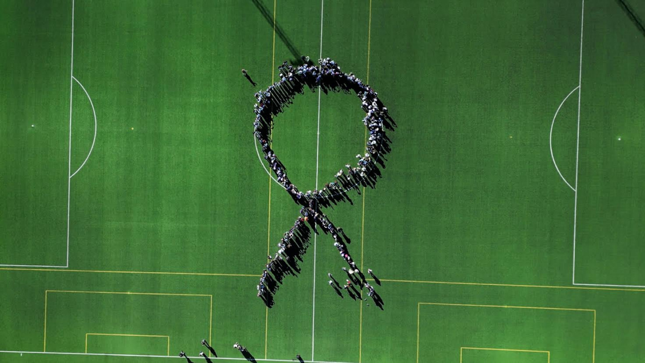 La jornada ha culminado con la creación de un gran lazo humano en el Estadi de Futbol La Costa, donde el alumnado se ha agrupado para formar este símbolo universal contra la violencia de género.