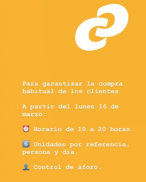 - Las tiendas permanecerán abastecidas reforzando y garantizando el suministro de productos básicos y de primera necesidad, para que nuestros clientes puedan realizar su compra diaria.