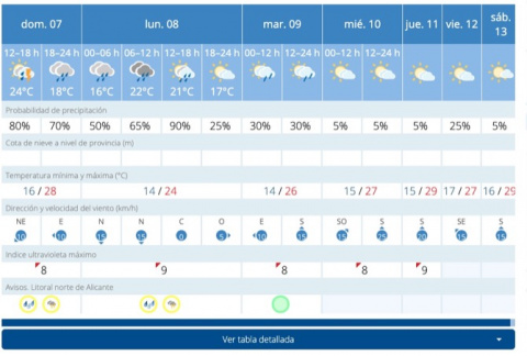 La Agencia Estatal de Meteorología ha activado la alerta amarilla por previsión de fuertes lluvias en la Marina Alta para este sábado 16 de mayo