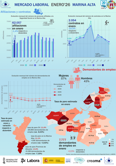 La Marina Alta inicia 2026 manteniendo una evolución interanual favorable del mercado laboral, pese al ajuste estacional propio del mes de [...] Leer más...