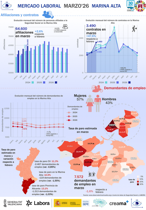 El mercado laboral de la Marina Alta ha registrado en marzo de 2026 una notable aceleración, con la creación de 1.611 nuevos empleos que elevan [...] Leer más...