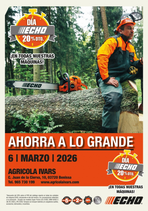 Agrícola Ivars, S.L. volverá a celebrar el Día ECHO el próximo 6 de marzo de 2026, una jornada especial en la que aplicará un 20% de descuento [...] Leer más...